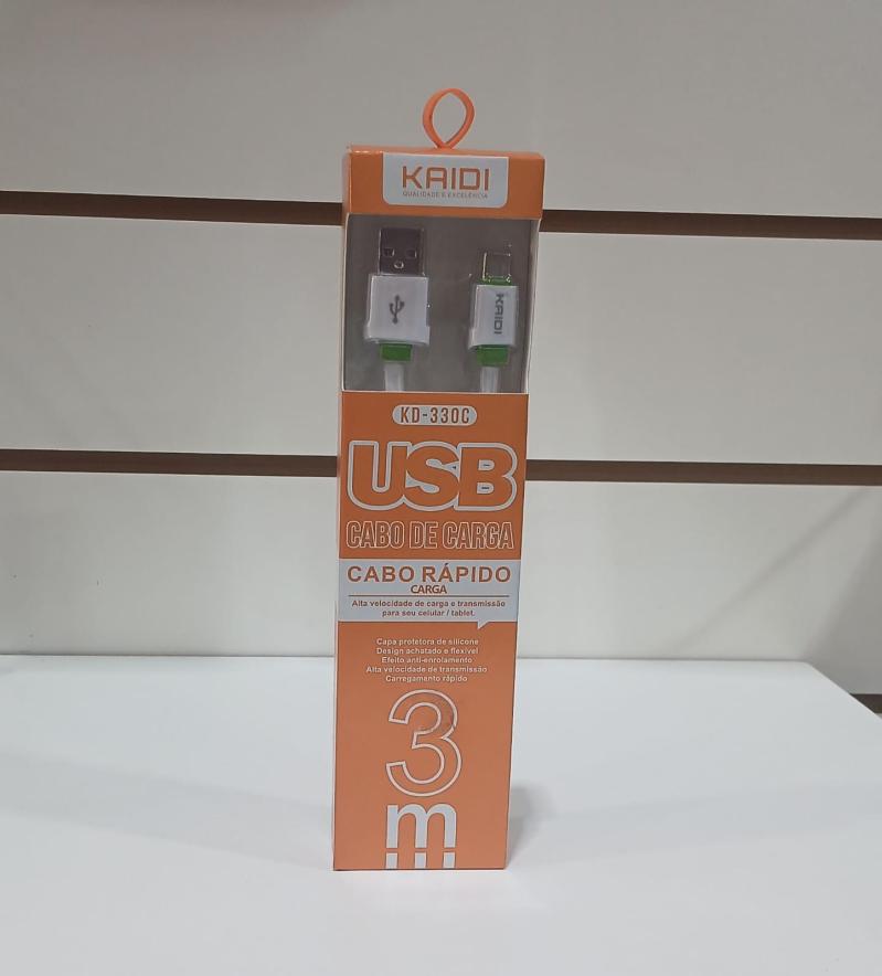 Itens na Caixa: 1 Cabo de Carga USB Kaidi KD-330C 3 Metros