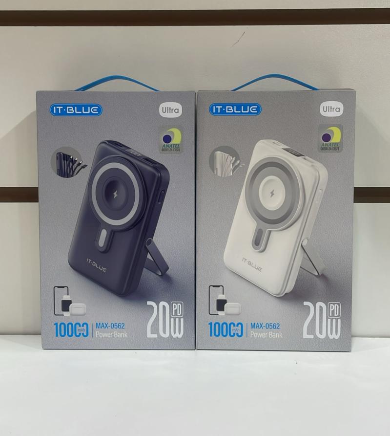 O Power Bank It-Blue MAX-0562 é um carregador portátil de 10.000mAh com design compacto, múltiplas portas (USB-A, USB-C, Micro USB) e, em algumas versões, carregamento sem fio (Qi) e tecnologia PD 20W (Power Delivery), além de cabos integrados para diferentes aparelhos (iPhone, Tipo-C, Micro-USB) e suporte para carregar vários dispositivos simultaneamente, sendo ideal para quem busca praticidade e versatilidade, com indicadores LED para o nível de bateria.