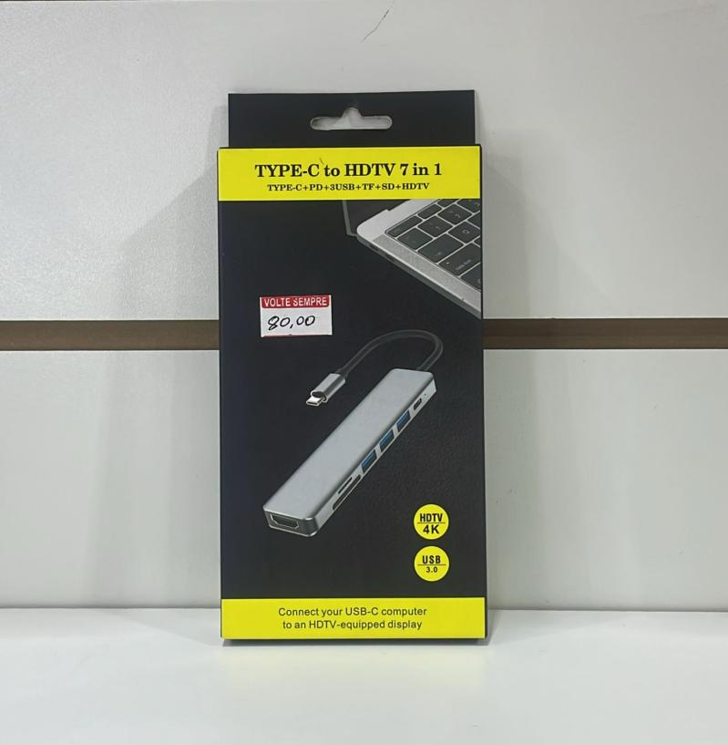 Perfeito para transformar seu notebook em uma estação de trabalho completa, o Hub 7 em 1 com conexão USB-C é ideal para criadores de conteúdo, profissionais e estudantes. Com estrutura em liga de alumínio e cabo de 22 cm, garante resistência, dissipação de calor eficiente e mobilidade.
